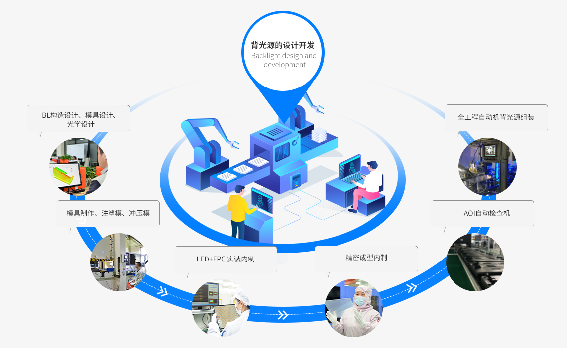 公司深耕背光顯示模組領(lǐng)域;通過持續(xù)不斷的技術(shù)創(chuàng)新;不斷加深的一體化生產(chǎn)能力;持續(xù)打造技術(shù)領(lǐng)先、質(zhì)量過硬、服務(wù)周全的優(yōu)質(zhì)產(chǎn)品。通過多年模具設(shè)計(jì)及制作經(jīng)驗(yàn),利用日本高精度模具加工等設(shè)備;緊貼客戶需求,重視產(chǎn)品組合開發(fā),向客戶提供一站式專業(yè)產(chǎn)品及技術(shù)解決方案。
